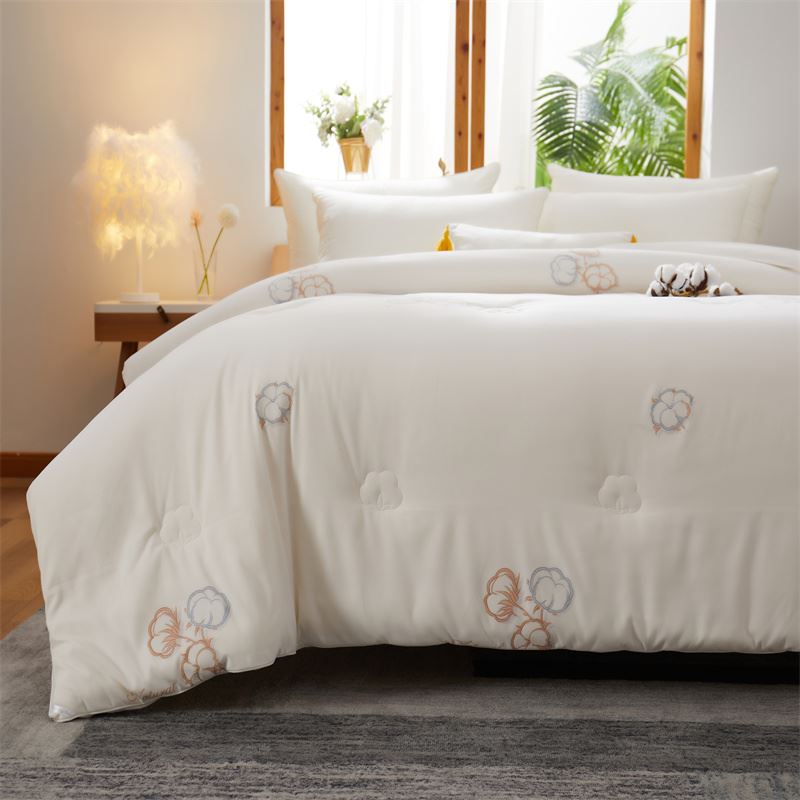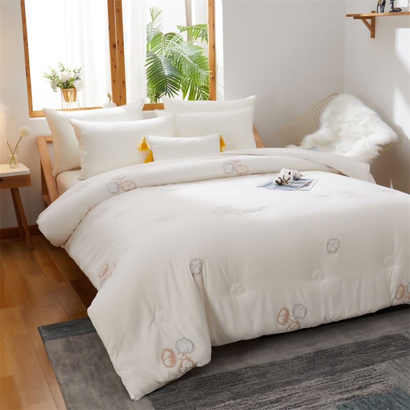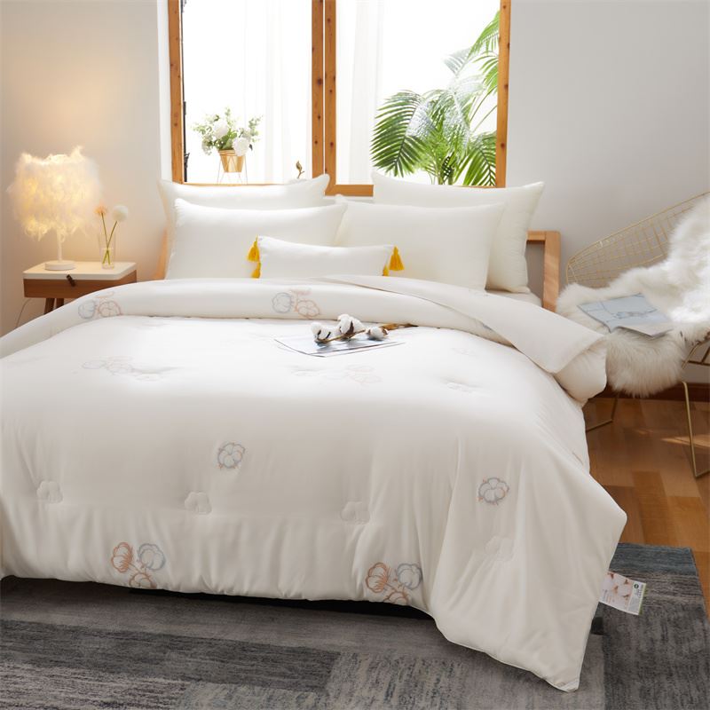 整張棉花,貼身舒適,回首溫暖記憶。 定點(diǎn)絎縫工藝,有效固定內(nèi)芯。固定填充,更好的保護(hù)蓬松度,告別板結(jié),達(dá)到良好的透氣性。 面料:生物絨 填充:新疆棉花 規(guī)格:200*230cm 6斤
